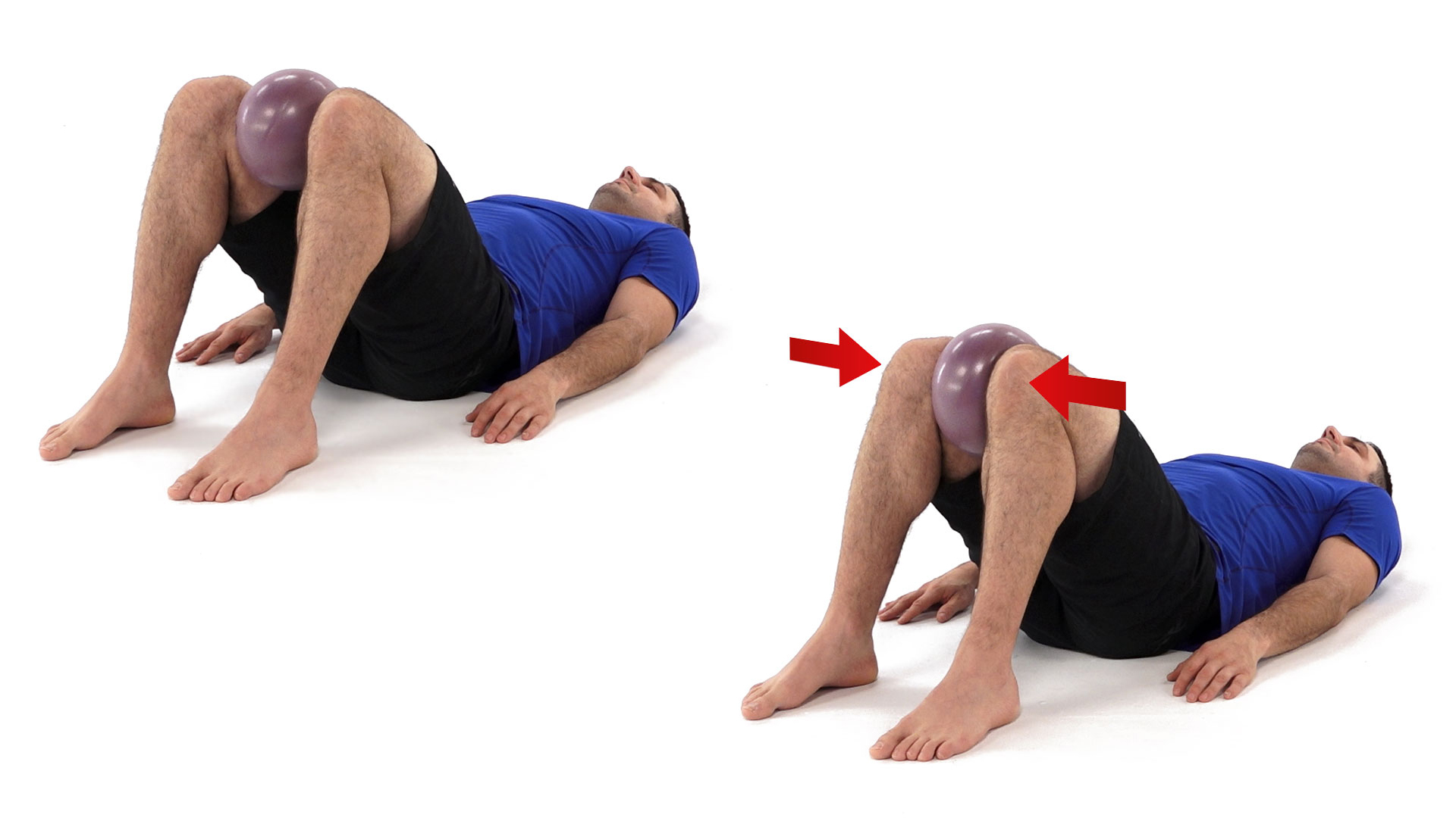 Lie on your back with your knees bent and a ball or pillow between them.