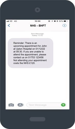 - Come from a named sender called ‘NHS-BHFT’ and not a generic phone number